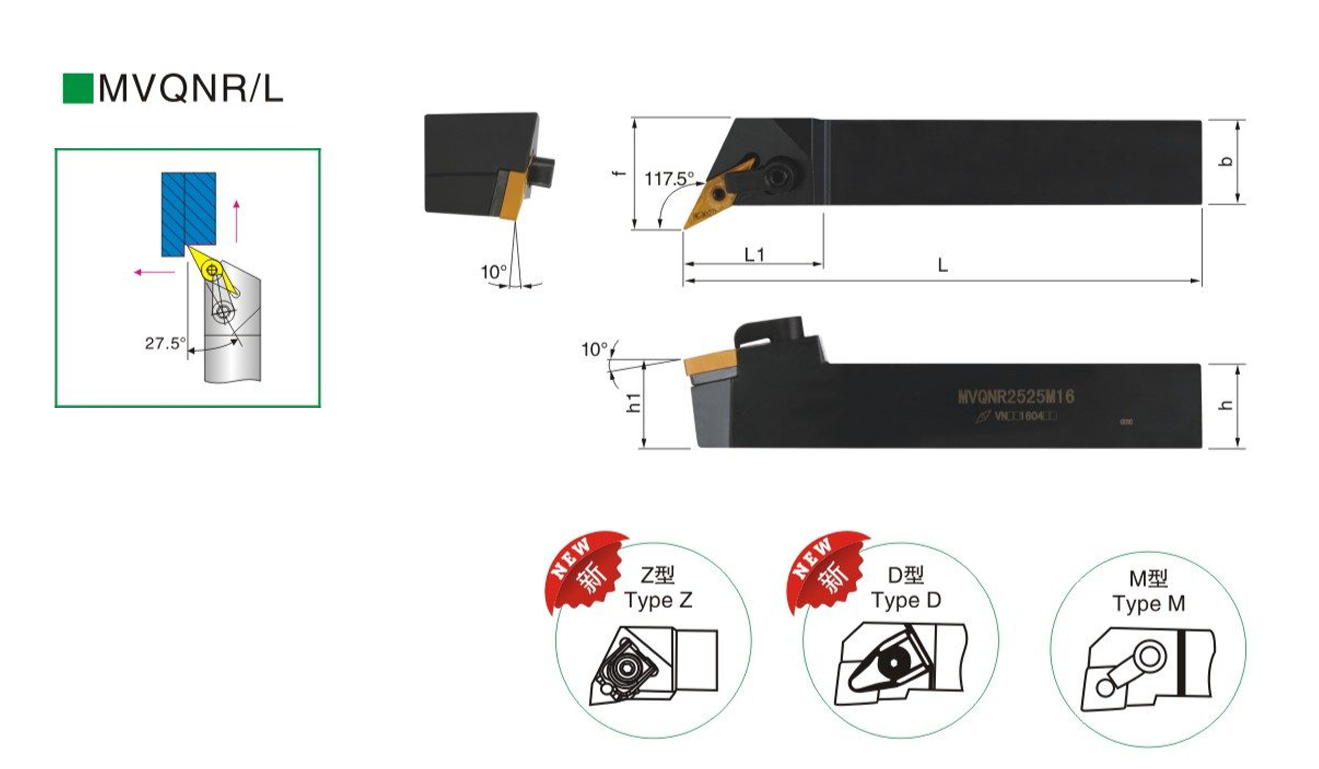 Резец наружного точения DVQNL2020K16 (Тип пластины: VN**1604**)