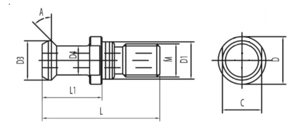 Штревель (болт штревельный) JIS-6339-50 с отверстием для СОЖ, без уплотнительного кольца, для фрезерных патронов BT50 (ISO50).