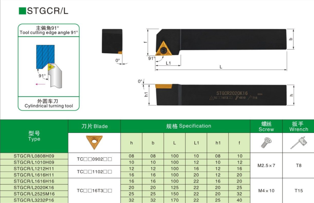 Резец наружного точения STGCL2020K16 (Тип пластины: TC**16T3**)